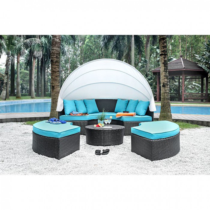 Stretch out and bask in the fresh outdoors atop this versatile patio sectional! Separate the ottomans for a spacious seating area or push everything together to make an outdoor daybed. Let the curved fabric awning provide either shade from the sun or shelter from the elements so you can enjoy the outdoors all year round!