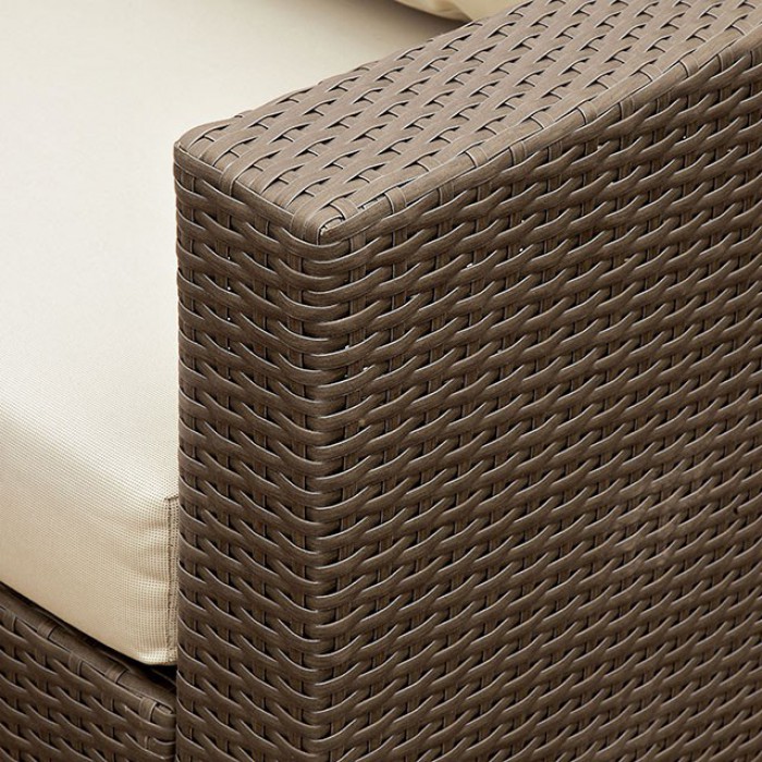 ContemporaryBrown, BeigeAluminum, Faux Rattan, PolyesterBeige Fabric CushionsIncludes OttomanAluminum FrameUV & Water ResistantBrown Wicker